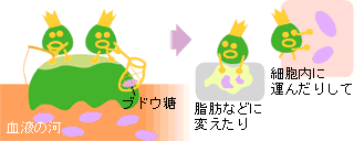 インスリンの分泌は正常だが、糖が必要以上に供給される場合。糖尿病の約95%がこのタイプで、成人になってから発病することが多く、加齢、肥満、食べ過ぎ、運動不足などの生活習慣が主な原因です。インスリン依存型がウィルス感染や自己免疫などに関係して発症するのに対し、インスリン非依存型は体質遺伝も大きく関係しているので、近親者、とくに両親が糖尿病患者ならば発病する可能性は高くなります。 |